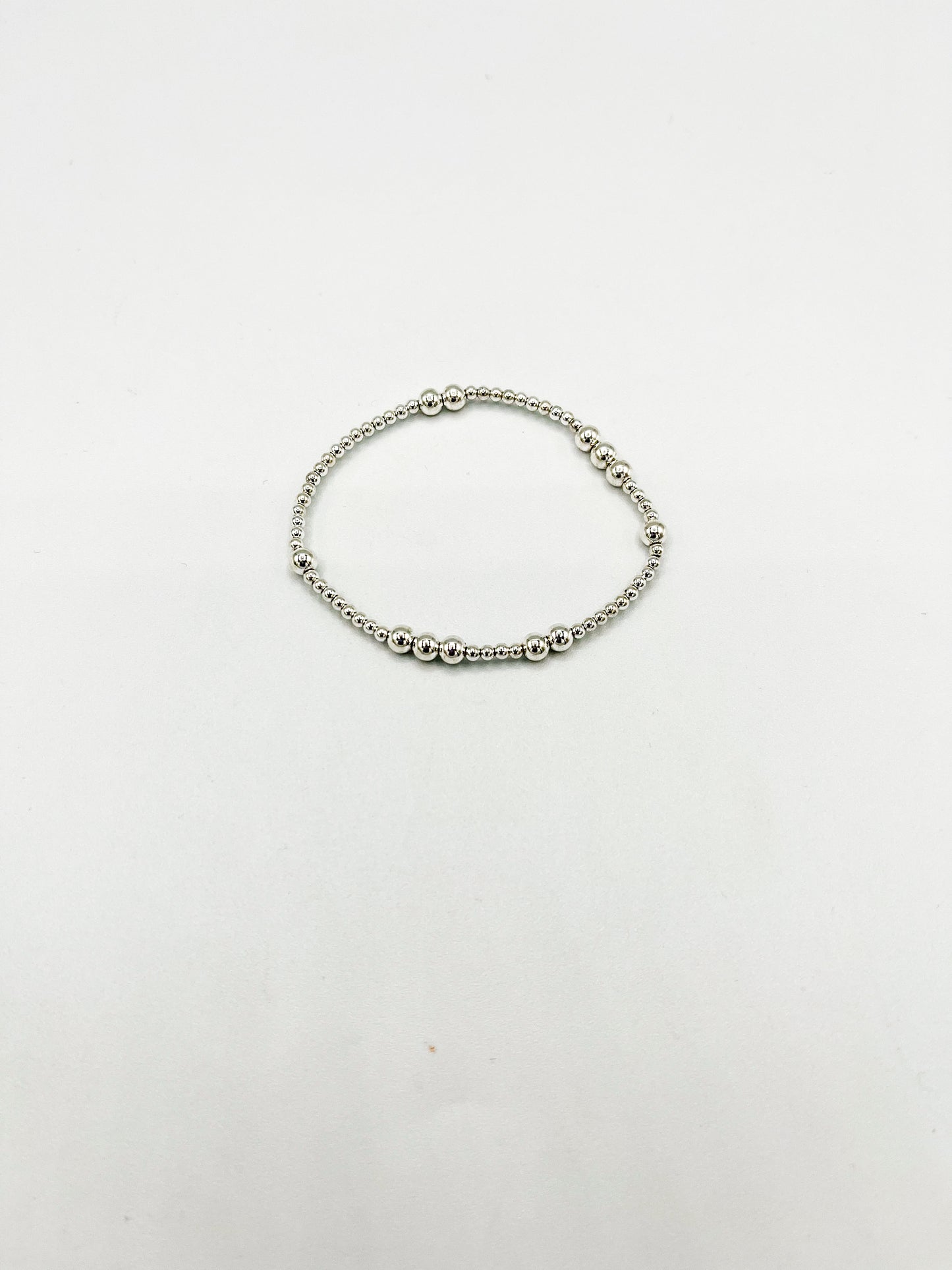 Add some subtle everyday style with our Kim Bracelet. This silver beaded stretch bracelet is the perfect addition to any outfit.
